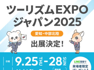 2025.11.07 【ツアーコンダクター】インタビュー動画掲載のお知らせ 阪急トラベルサポートで活躍する、ツアーコンダクターの動画を掲載しました。 現役のツアコンが様々な質問に答えます! ▼画像クリックすると動画ページに遷移します ▼… 2025.11.07 <マイナビ2026>会社説明会のご案内 阪急トラベルサポートでは、ツアーコンダクター(契約社員)の募集をしております。 皆様からのご応募をお待ちしております♪ ▼会社説明会のご予約はこちら (マイナビ… 東海・北陸 2025.08.01 ツーリズムEXPOジャパン2025出展のお知らせ【9/25~9/28】 2025.05.01 【ツアーコンダクター】海外実地研修 動画掲載のお知らせ 今回はなんと、これまで未公開だった海外実地研修に密着し撮影をしてきました! 研修では、元ツアコン講師から現地での対応を学びます! 阪急トラベルサポートでは不安な… 2024.12.26 年末年始休業のお知らせ 平素は格別のご高配を賜り、厚く御礼申し上げます。 大変恐れ入りますが、弊社では下記の期間を年末年始休業とさせていただきます。 ≪年末年始休業期間≫ 2024年1…